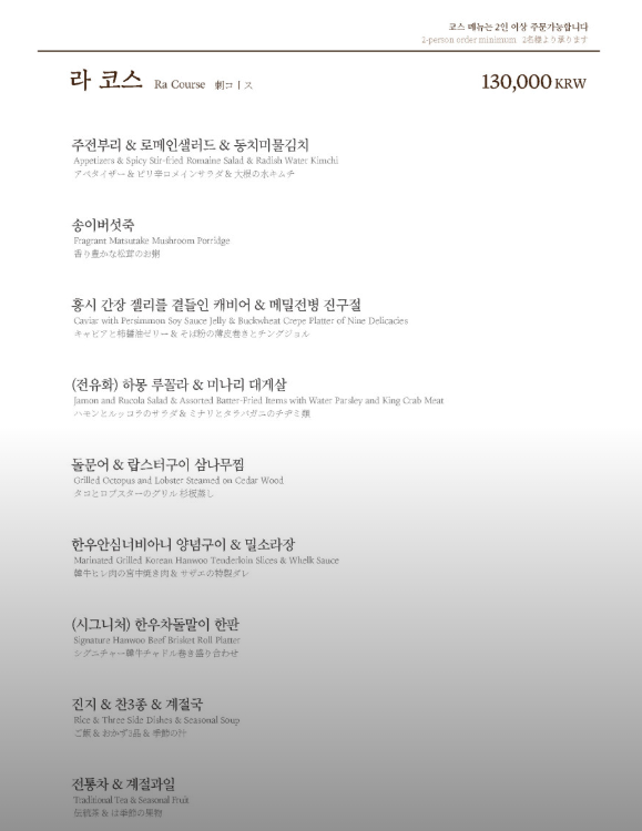'라' 코스 1인 13만원 으로