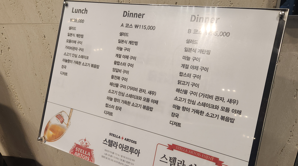 야채구이 + 관자구이 +소고기(안심)구이 들어가고